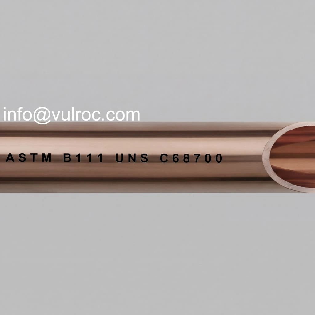 C68700 aluminum brass is a copper-zinc alloy containing approximately 2% aluminum with small additions of arsenic as a corrosion inhibitor. It is specifically developed for condenser and heat exchanger tubing operating in seawater and brackish water, offering strong resistance to impingement, erosion, and corrosion.